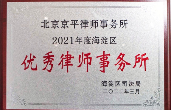 京平律所被評(píng)為“2021年度海淀區(qū)優(yōu)秀律師事務(wù)所”,趙健主任被評(píng)為“優(yōu)秀律師事務(wù)